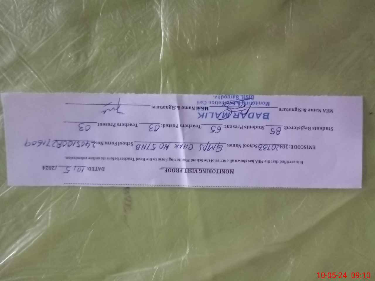 | EMIS Code: 38420733 | Name of School: GMPS CHAK NO.57 NB | |||