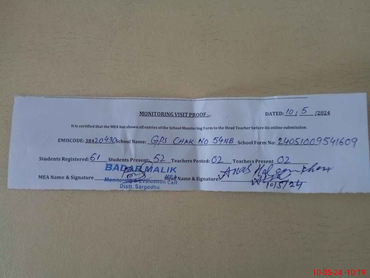 | EMIS Code: 38420430 | Name of School: GPS CHAK NO.54 NB | |||