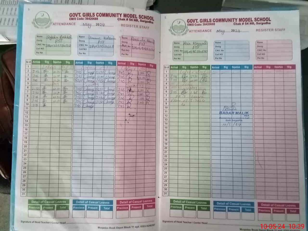 | CNIC | Full Name | Designation | R/C | Absence During Last Calender Month |