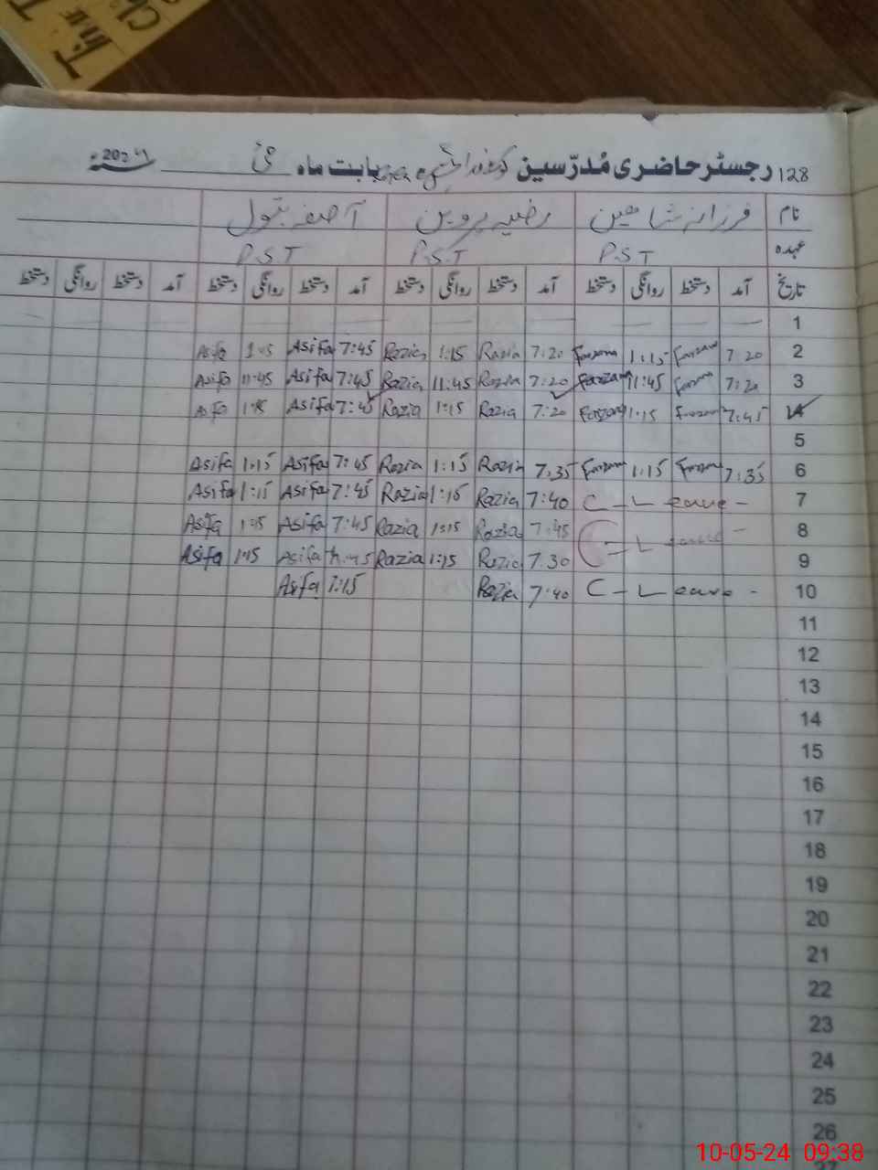 | Leave | Duty | Absent | Maternity | Medical | Ex- Pak |