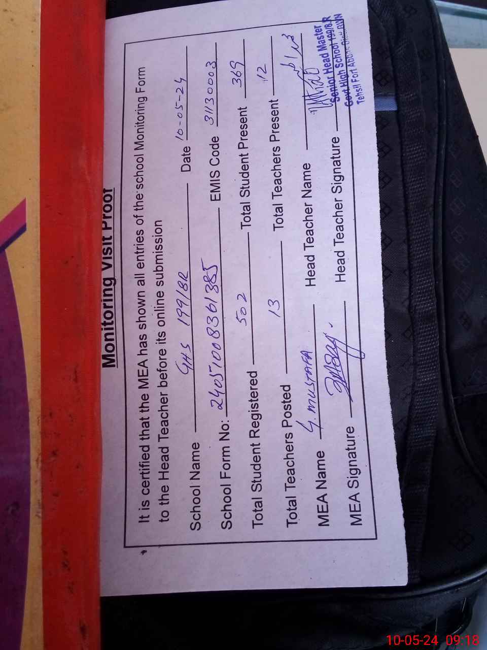 | EMIS Code: 31130003 | Name of School: GHS CHAK 199/8R | |||