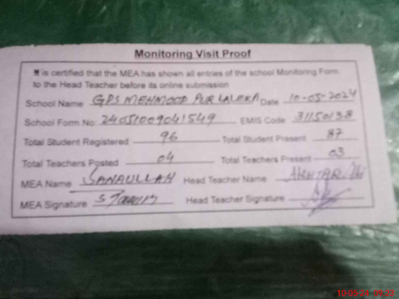 | EMIS Code: 31150138 | Name of School: GPS MEHMOOD PUR LALAY KA | |||