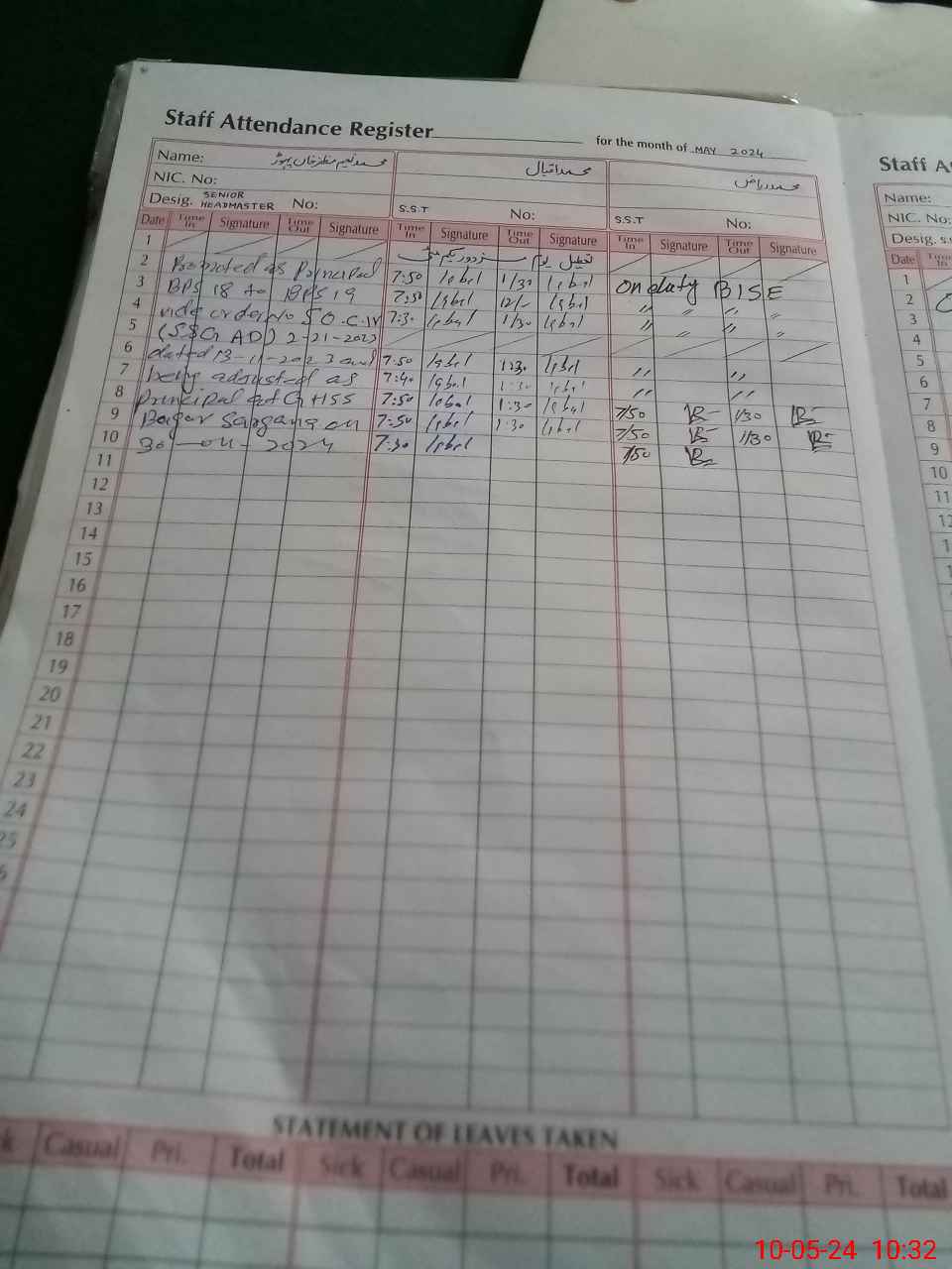 | CNIC | Full Name | Designation | R/C | Absence During Last Calender Month |