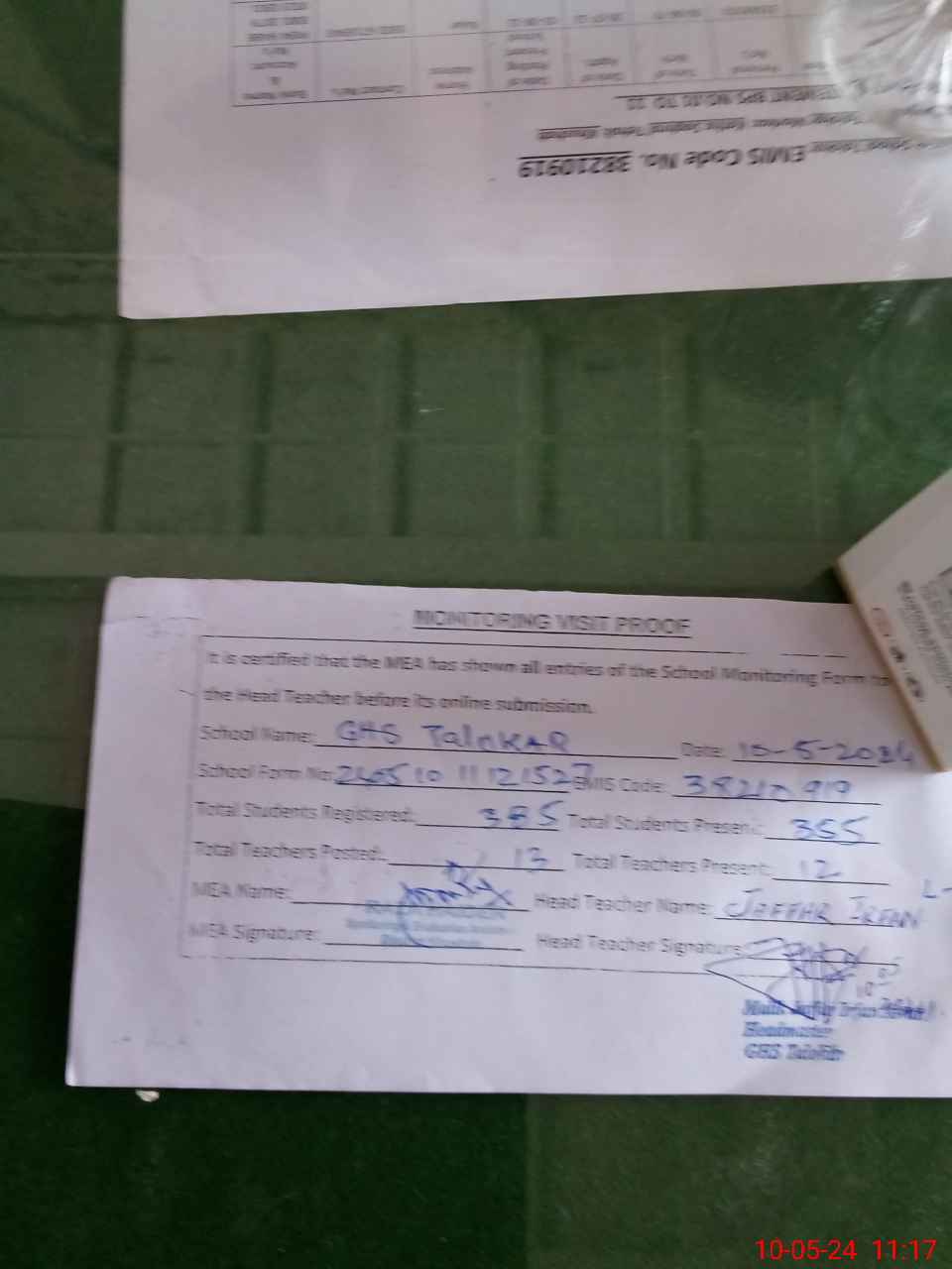 | EMIS Code: 38210919 | Name of School: GHS TALOKAR | |||