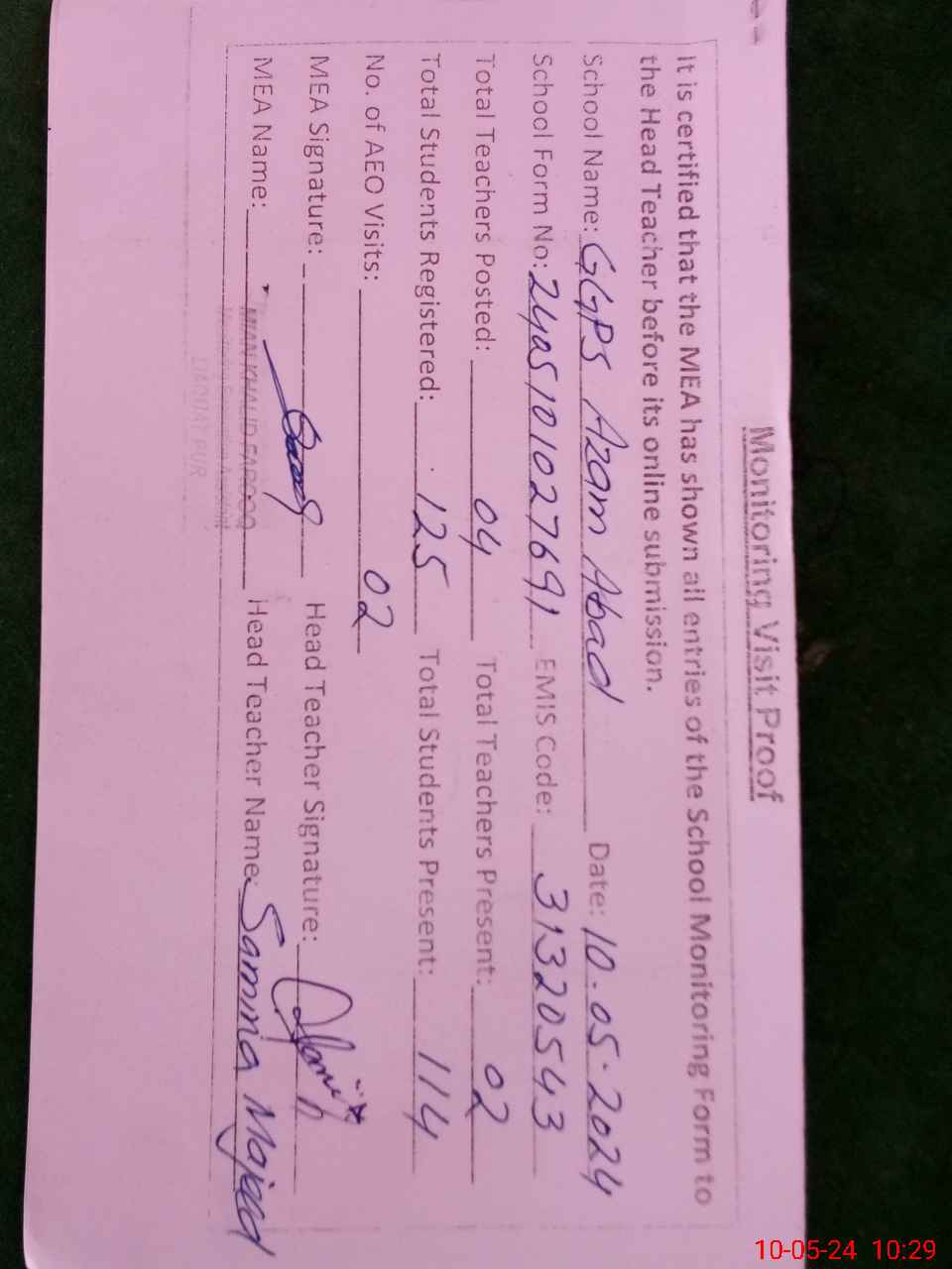 | EMIS Code: 31320543 | Name of School: GGPS AZAM ABAD | |||