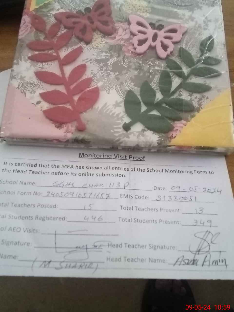 | Attendance Register | Head Teacher | MEA with School | Visit Proof |