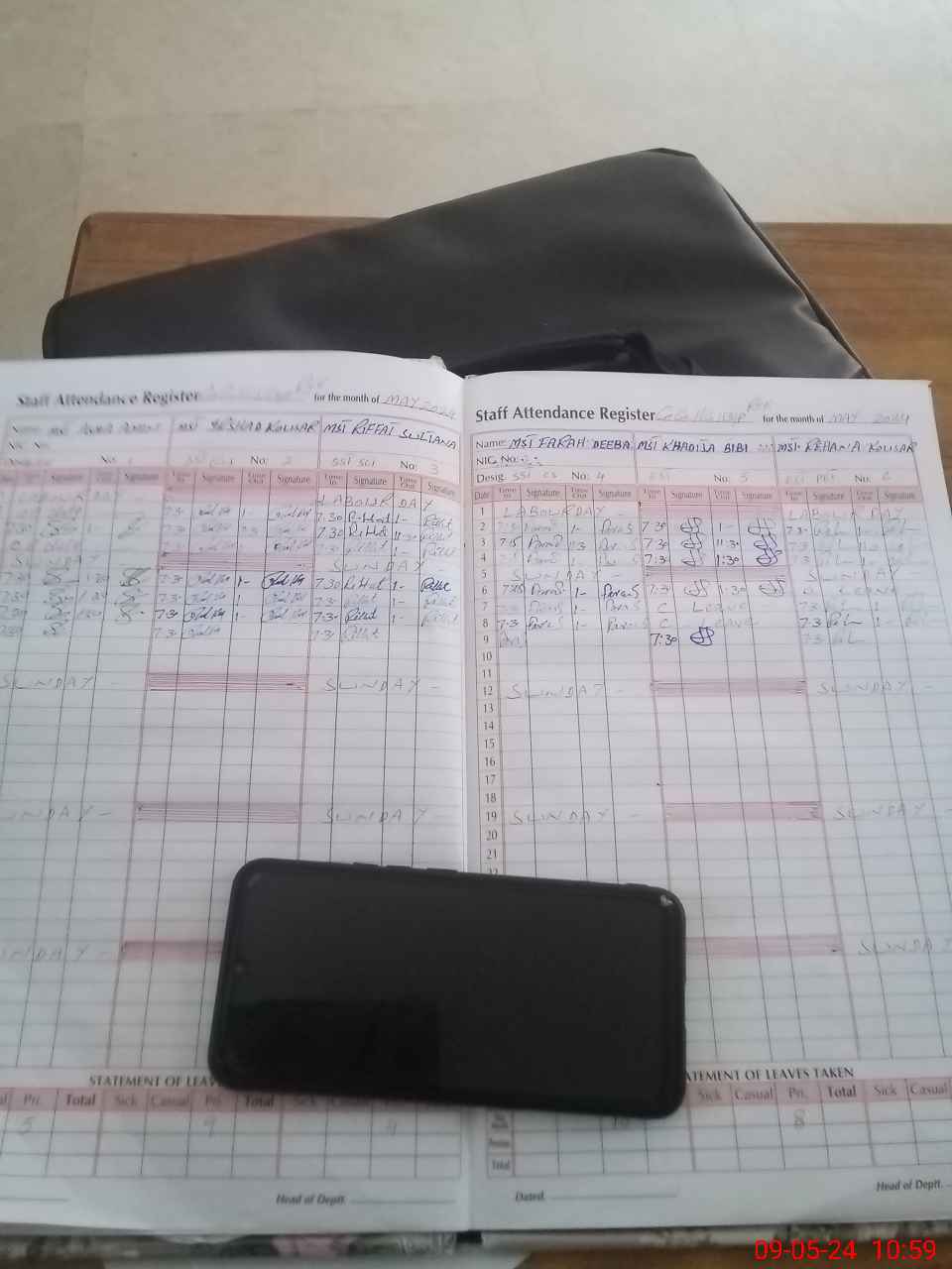 | CNIC | Full Name | Designation | R/C | Absence During Last Calender Month |