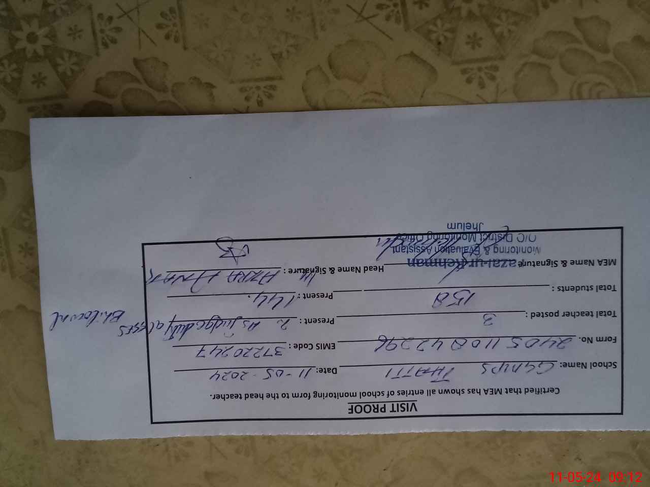 | Certified that this School was Inspected by the Undersigned MEA/DMO Today and the Information Stated Above is as Per Record. | |||||