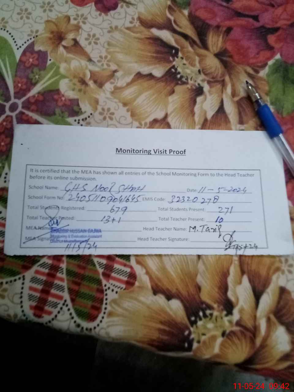 | EMIS Code: 32320278 | Name of School: GHS NOOR SHAH | |||