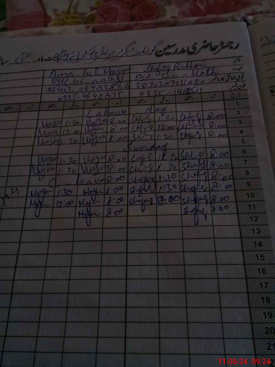 | Name: SY**** SH**** BU**** Designation: (School Headmaster's/Headmistress's) ESE Phone/Cell Number: 03**** |