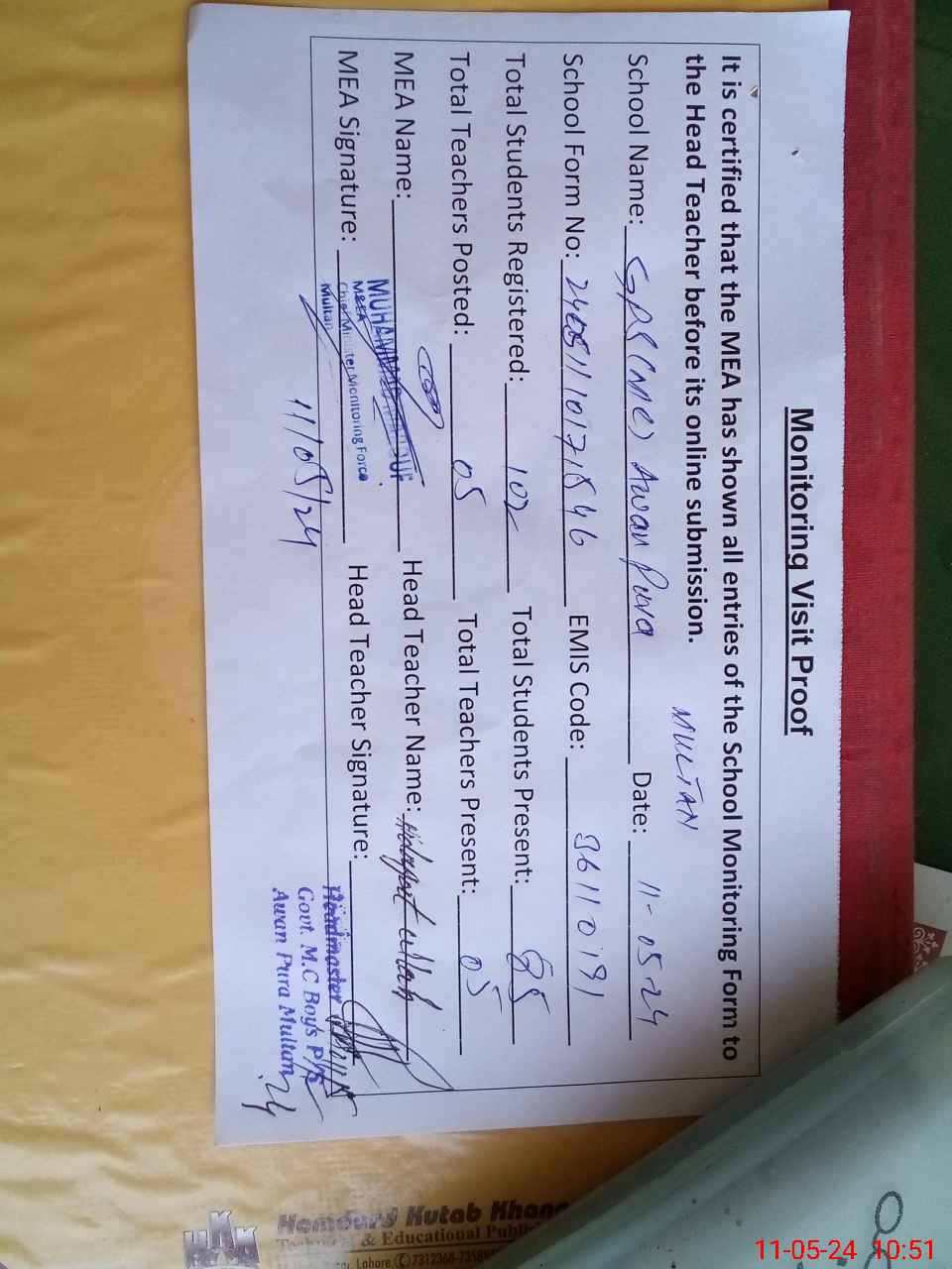 | Certified that this School was Inspected by the Undersigned MEA/DMO Today and the Information Stated Above is as Per Record. | |||||