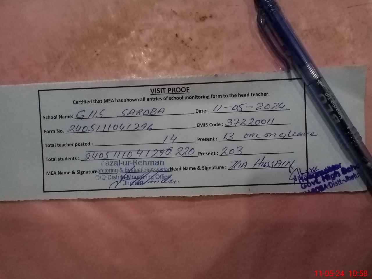 | EMIS Code: 37220011 | Name of School: GHS SAROBA | |||