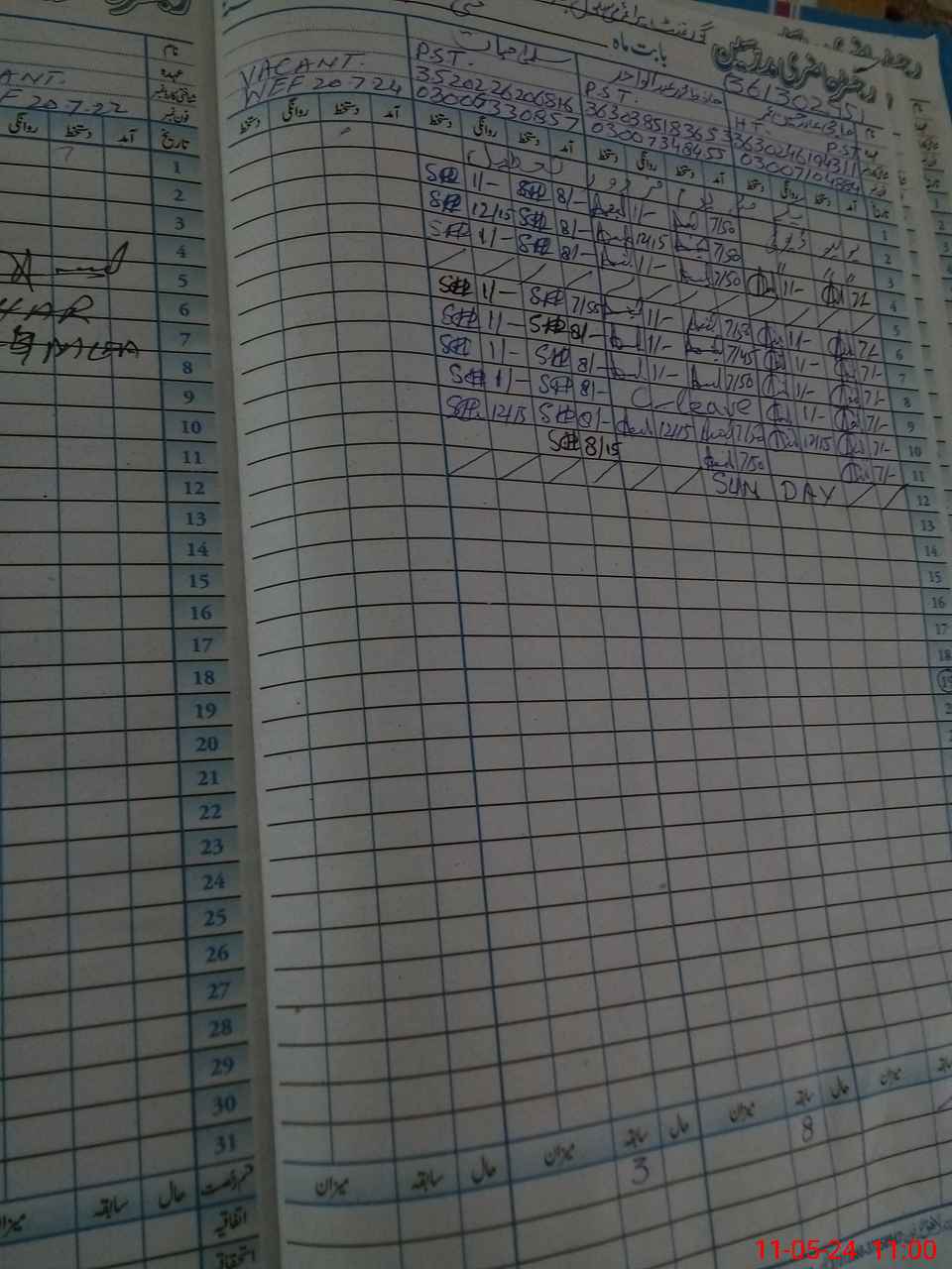 | CNIC | Full Name | Designation | R/C | Absence during last cal. month |