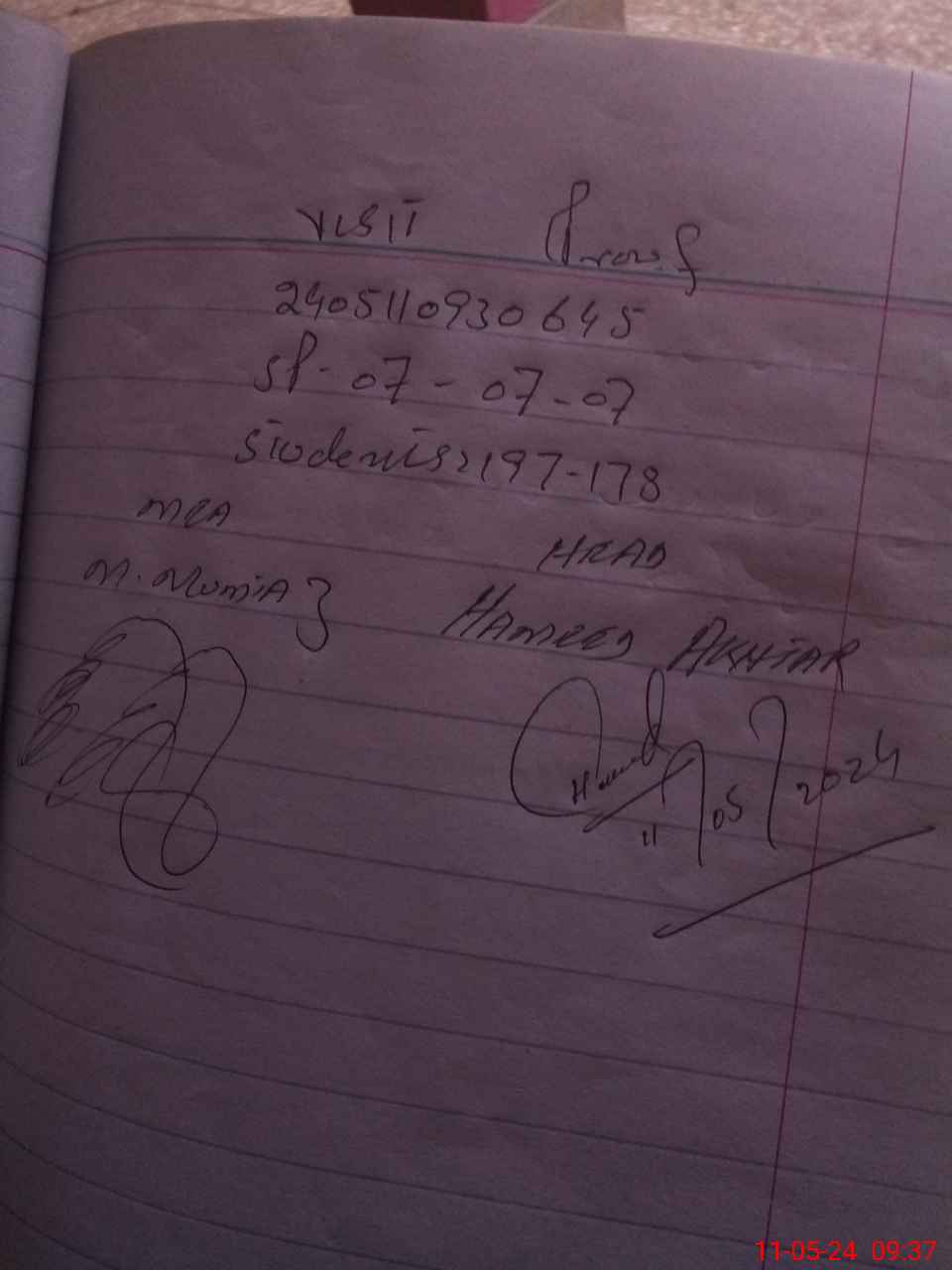 | Certified that this School was Inspected by the Undersigned MEA/DMO Today and the Information Stated Above is as Per Record. | |||||