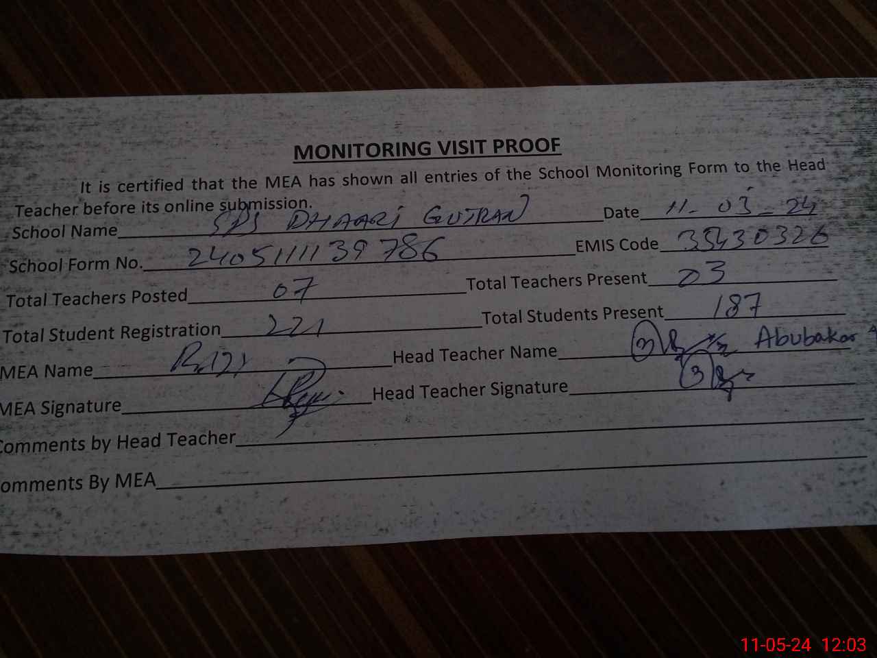 | EMIS Code: 35430326 | Name of School: GPS DHAARI GUJRAN | |||