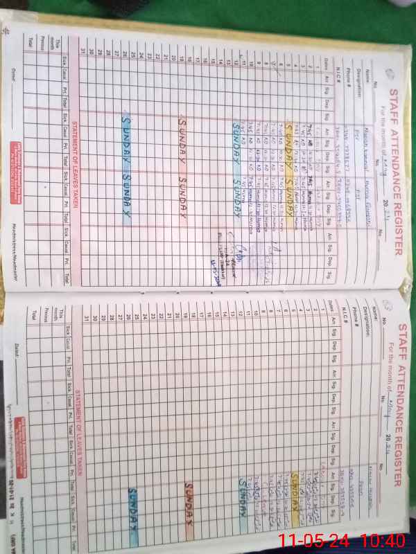 | CNIC | Full Name | Designation | R/C | Absence During Last Calender Month |