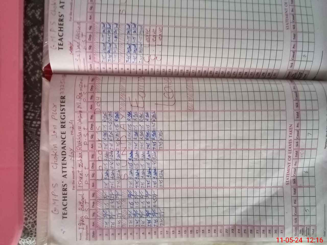 | Leave | Duty | Absent | Maternity | Medical | Ex- Pak |