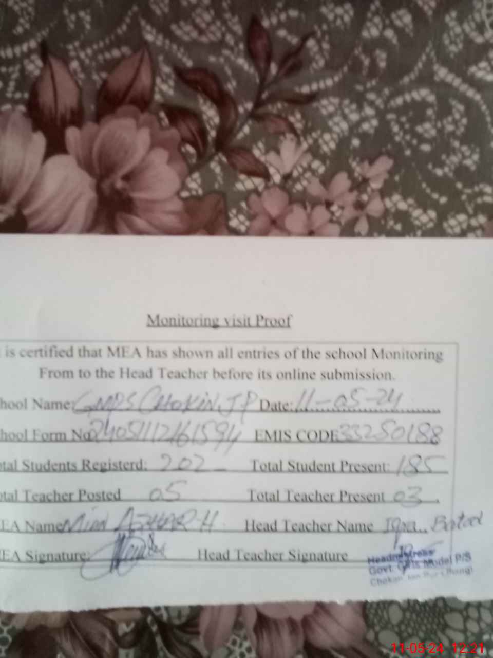 | EMIS Code: 33250188 | Name of School: GMPS CHOKIN JAN PUR | |||