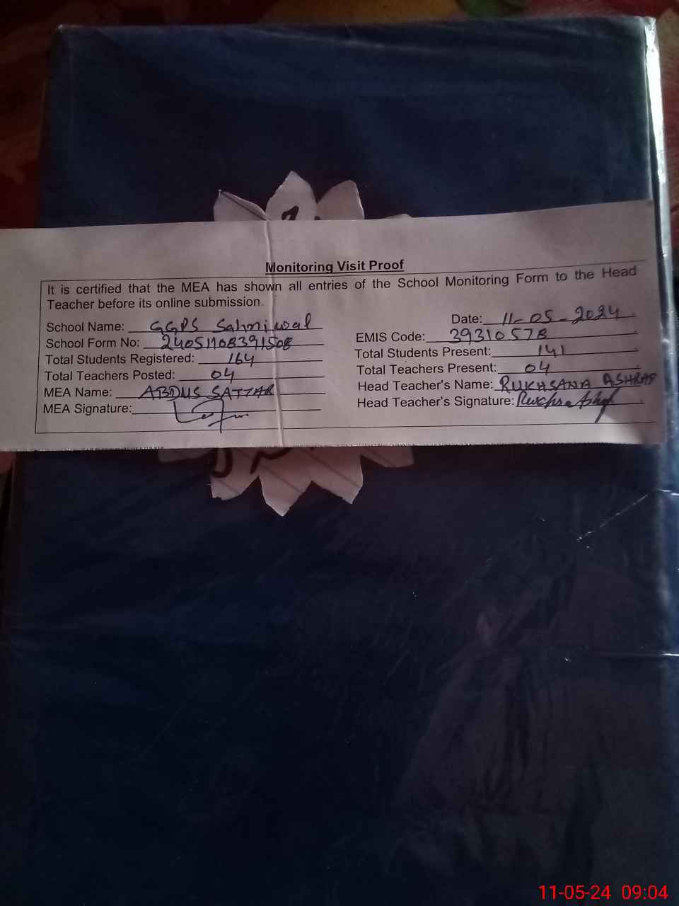 | Attendance Register | Head Teacher | MEA with School | Visit Proof |
