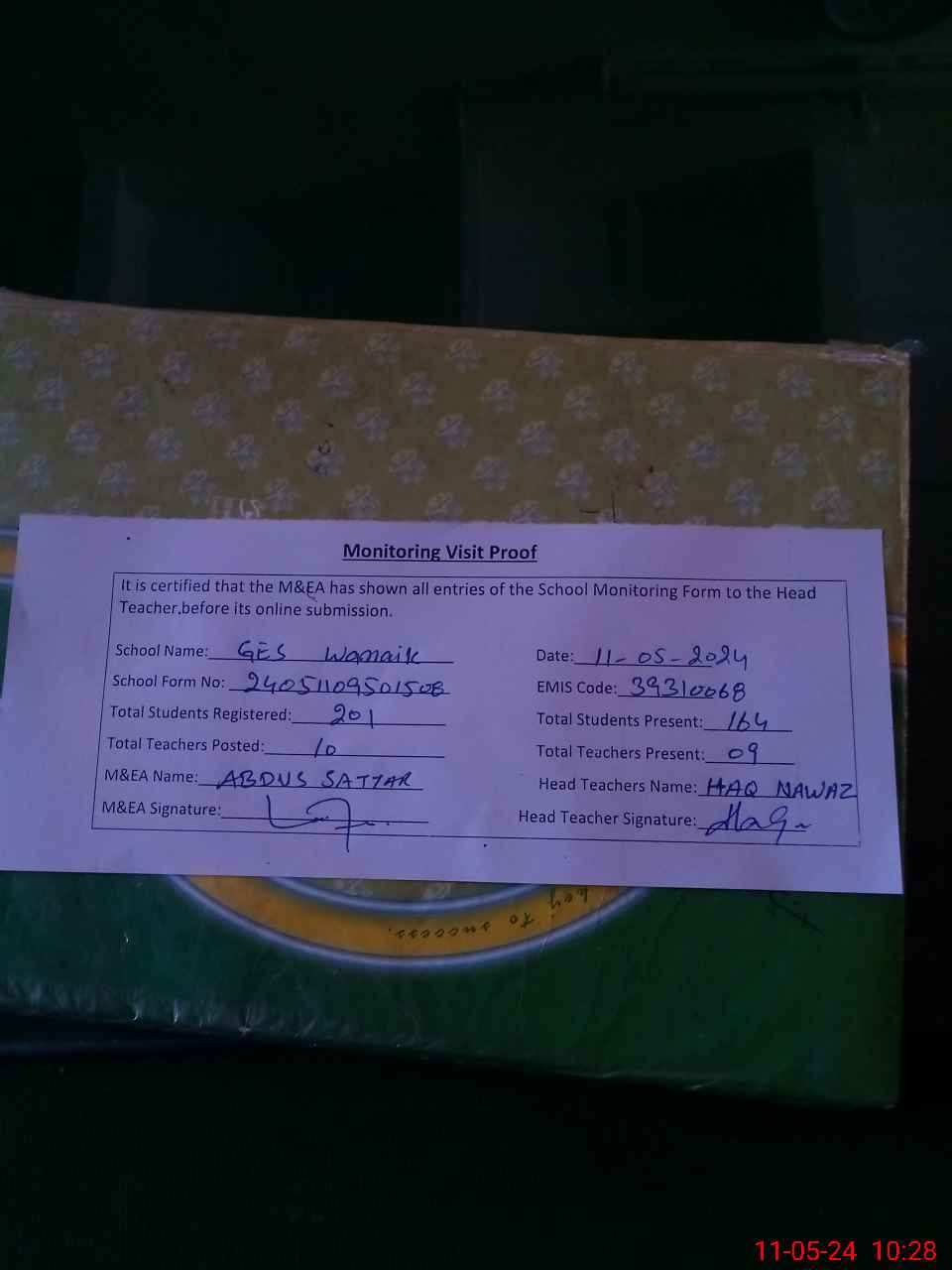 | EMIS Code: 39310068 | Name of School: GES WANAIKH | |||