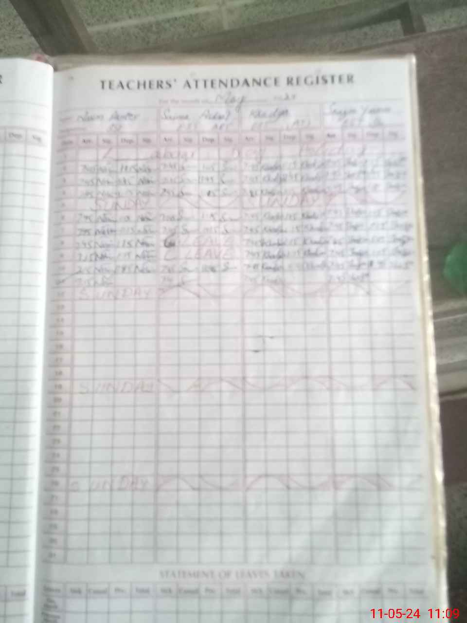 | Leave | Duty | Absent | Maternity | Medical | Ex- Pak |