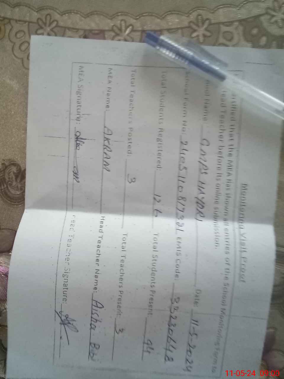 | EMIS Code: 33230648 | Name of School: GMPS HAYDRI CHAMAN | |||