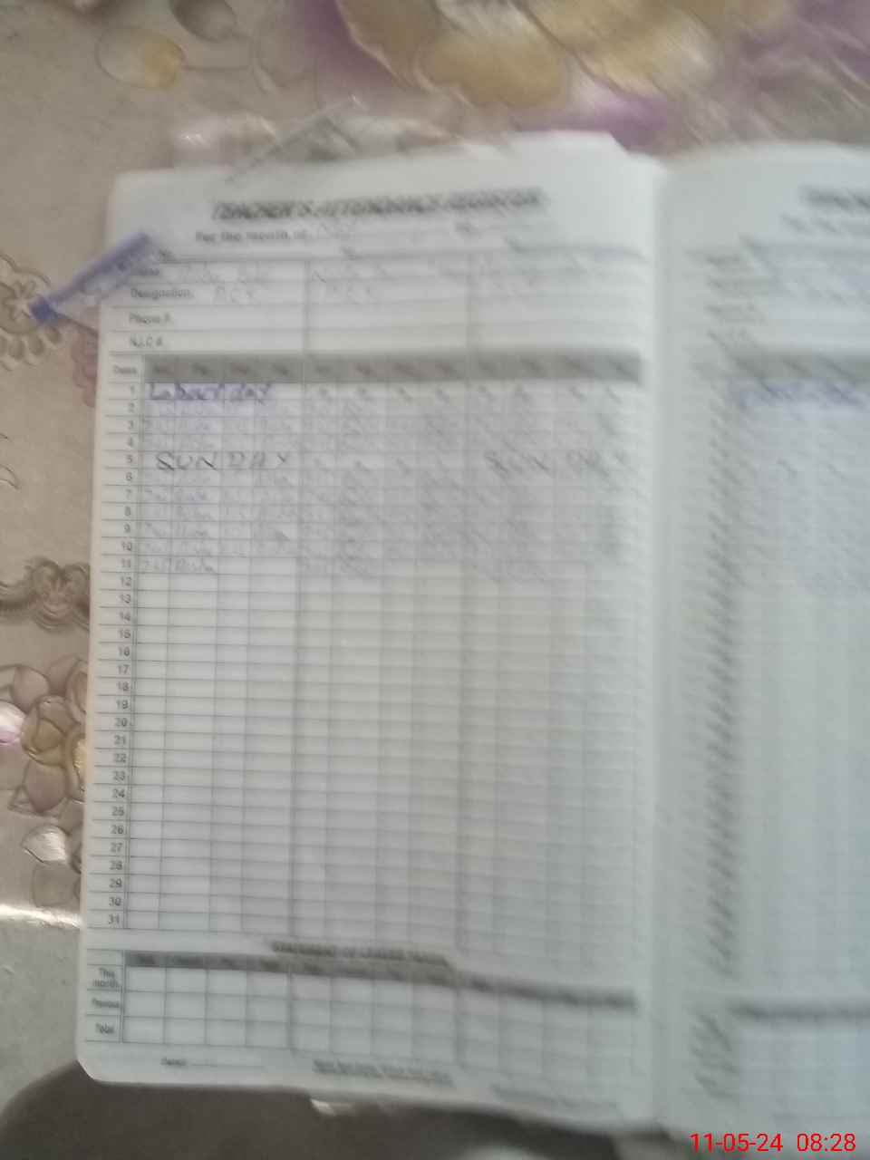 | 33**** | TA**** AB**** | SWEEPER | 1 | 0 | 0 | 0 | 0 | 0 | 0 | 0 | 1 | Absent (Un-Authorized) | |