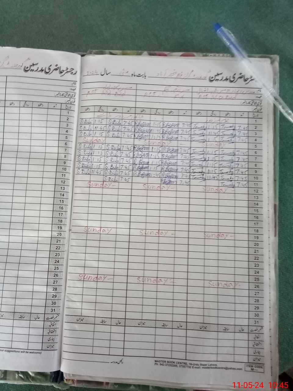 | CNIC | Full Name | Designation | R/C | Absence During Last Calender Month |