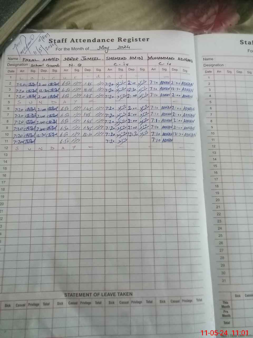 | 34**** | Sh**** Na**** | PST | Regular | 0 | 4 | 0 | 0 | 0 | 0 | 0 | 0 | 0 | Exam Duty |