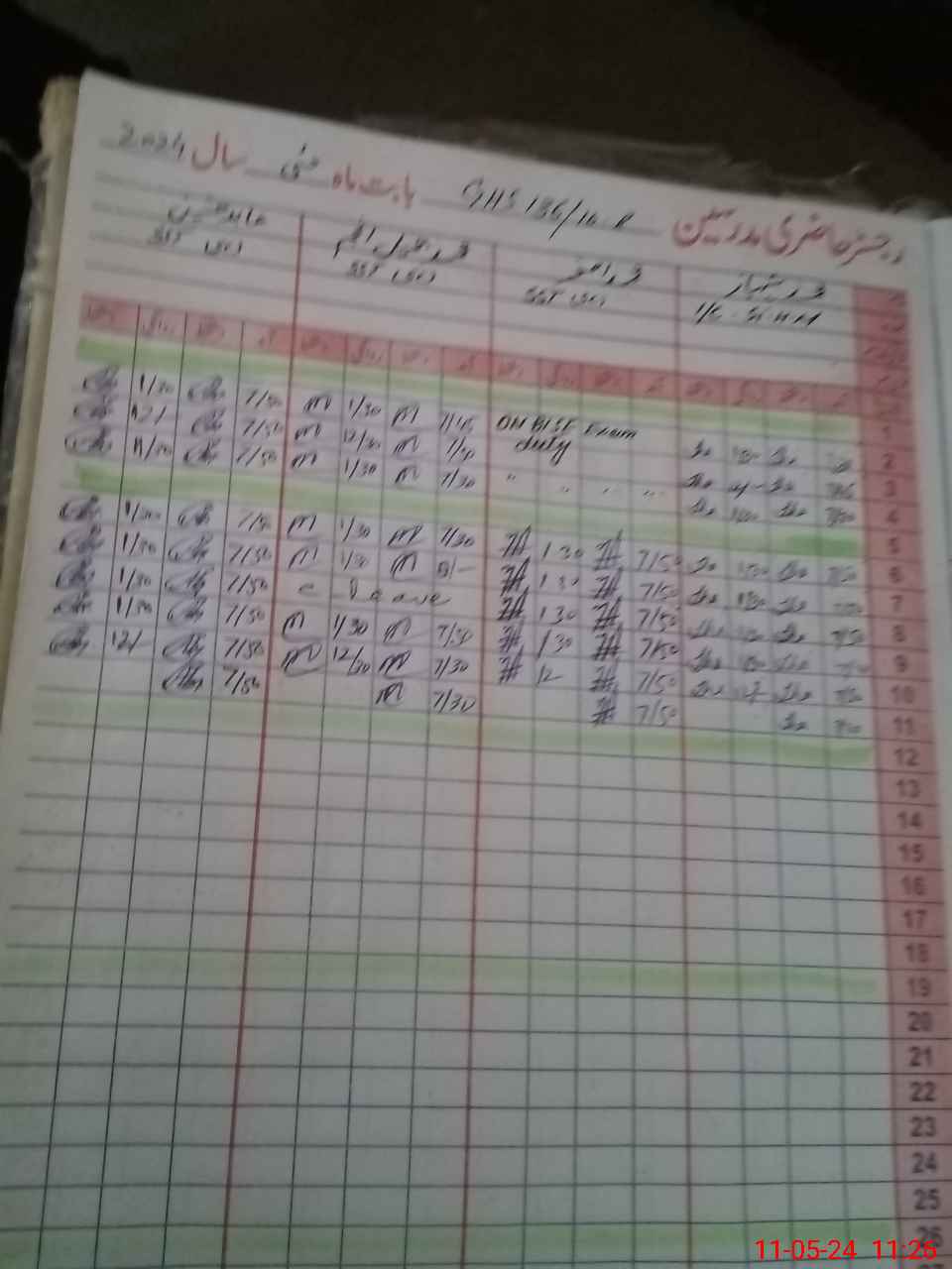 | 36**** | Al**** Ak**** | 1 | 1 | 0 | 0 | 0 | 0 | 0 | 0 | 0 | 0 | 0 | Exam Duty |