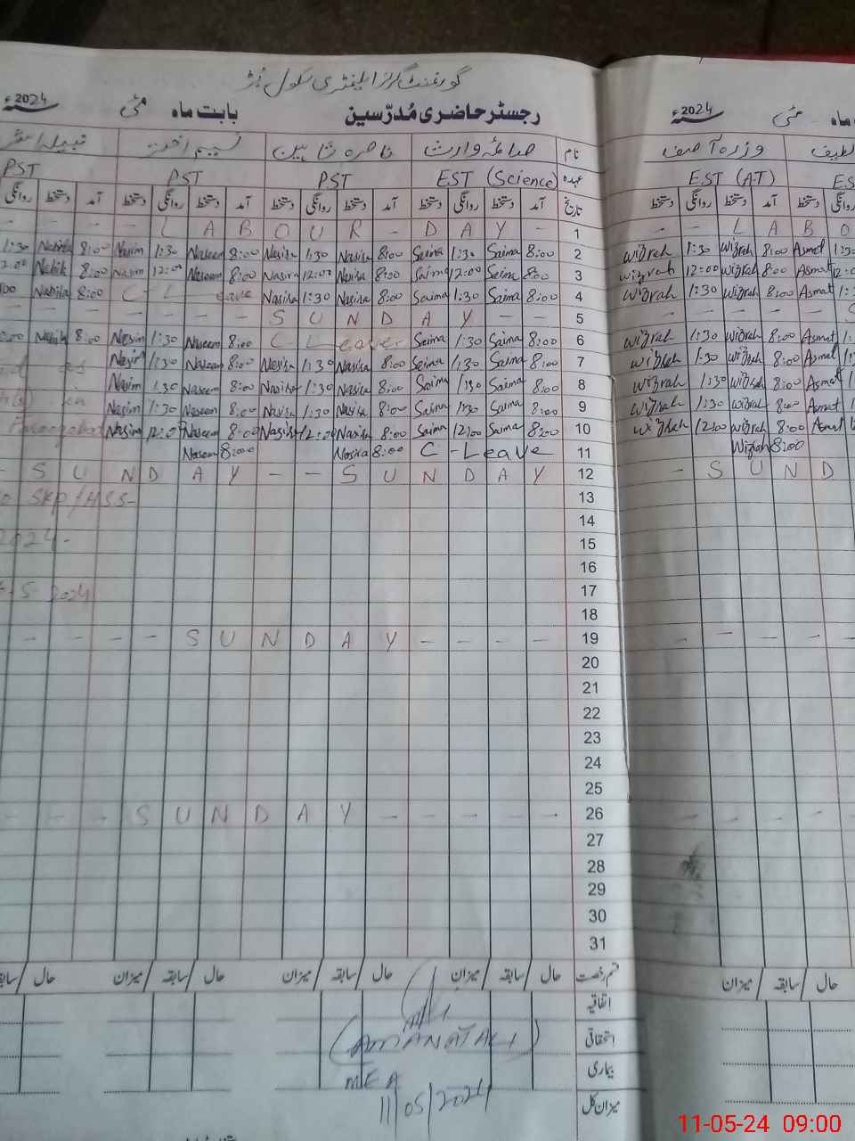 | CNIC | Full Name | Designation | R/C | Absence During Last Calender Month |