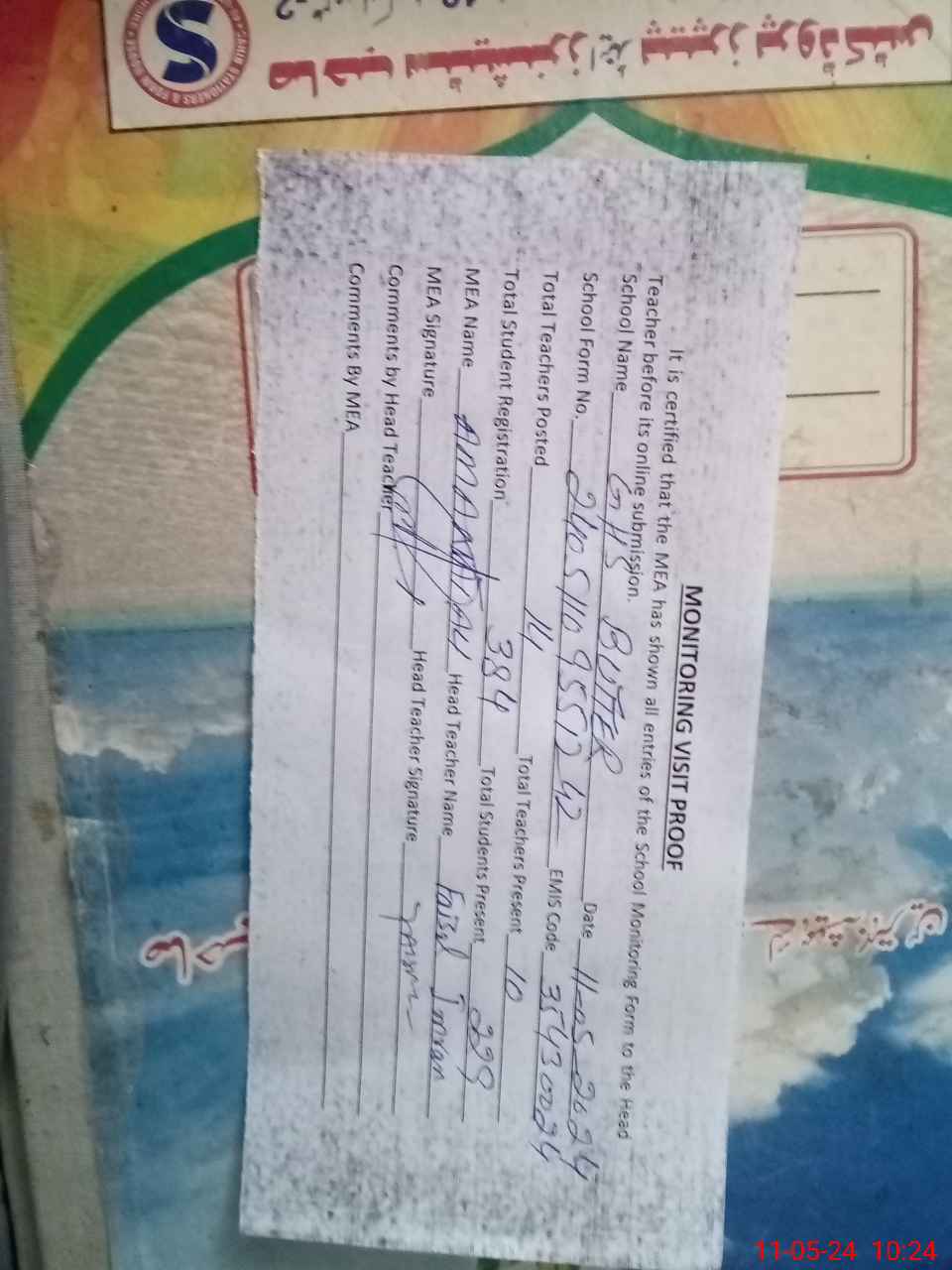 | EMIS Code: 35430024 | Name of School: GHS BUTTAR | |||