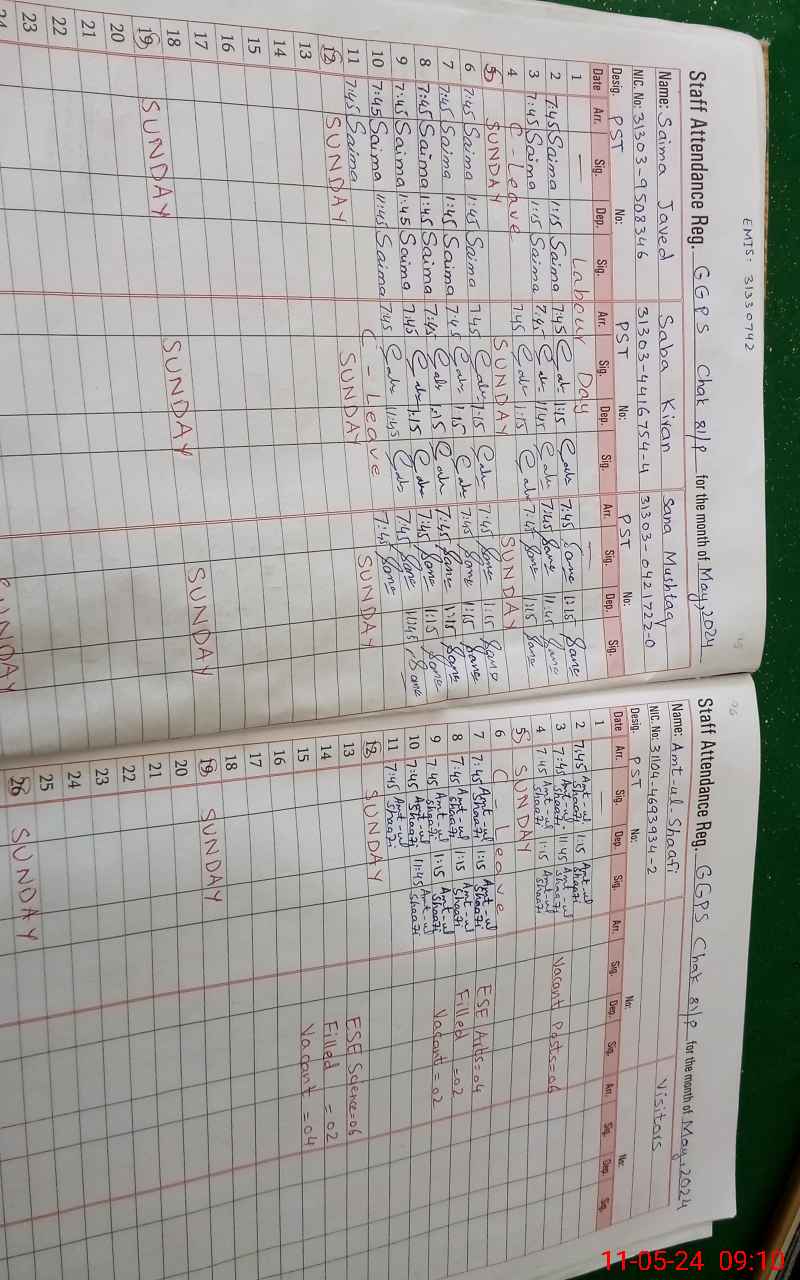 | CNIC | Full Name | Designation | R/C | Absence During Last Calender Month |