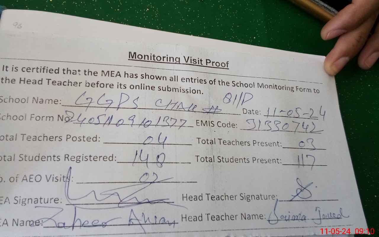 | Attendance Register | Head Teacher | MEA with School | Visit Proof |