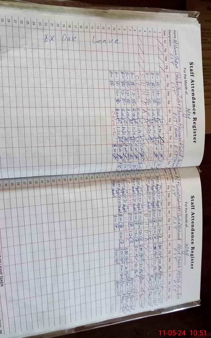 | Leave | Duty | Absent | Maternity | Medical | Ex- Pak |