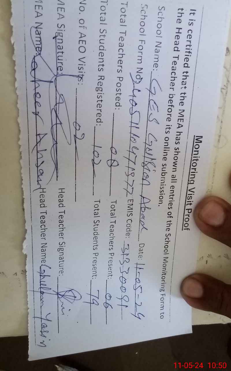 | EMIS Code: 31330091 | Name of School: GES GULSHAN ABAD | |||