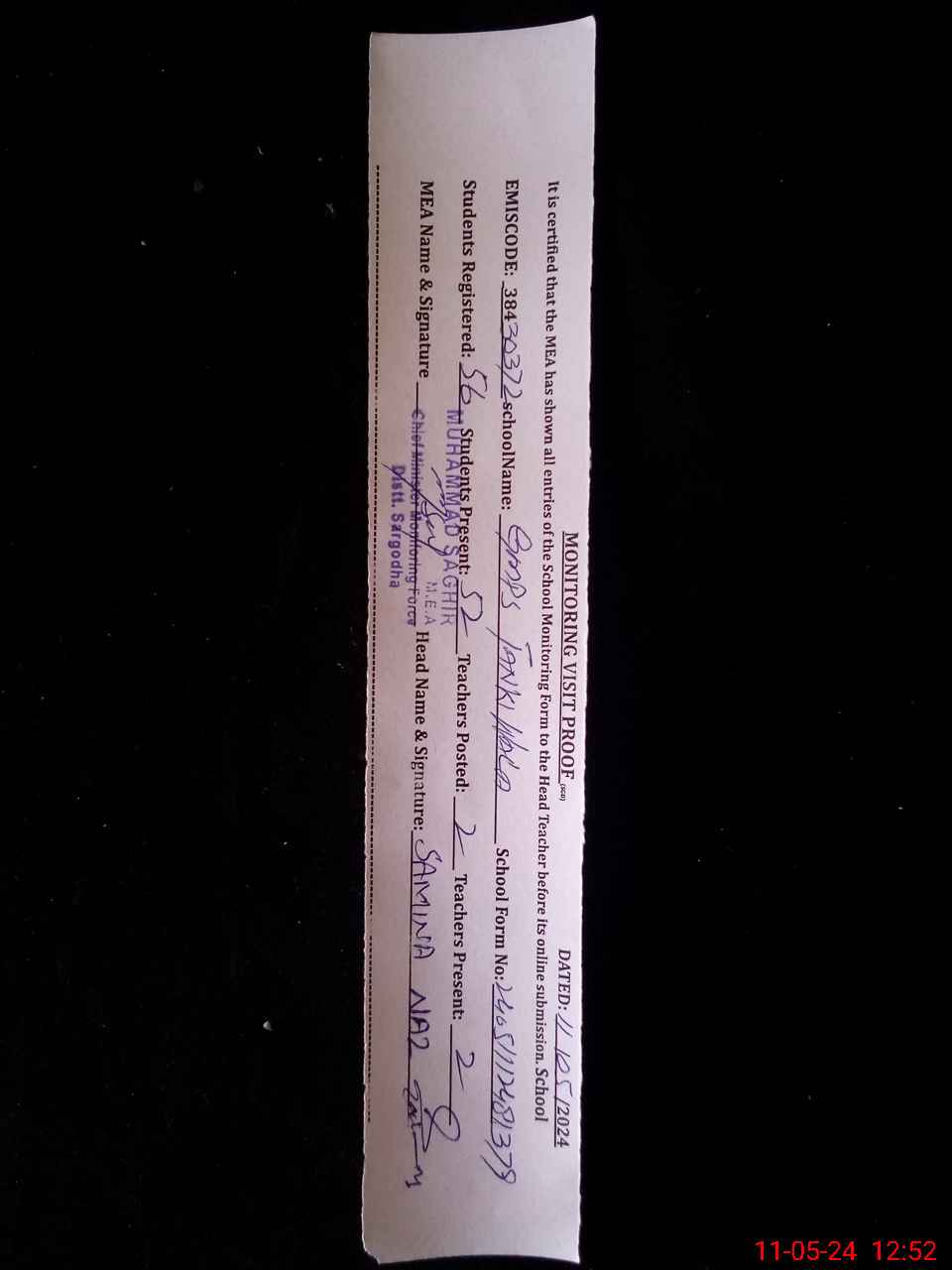 | EMIS Code: 38430372 | Name of School: GMPS TANKI WALA | |||