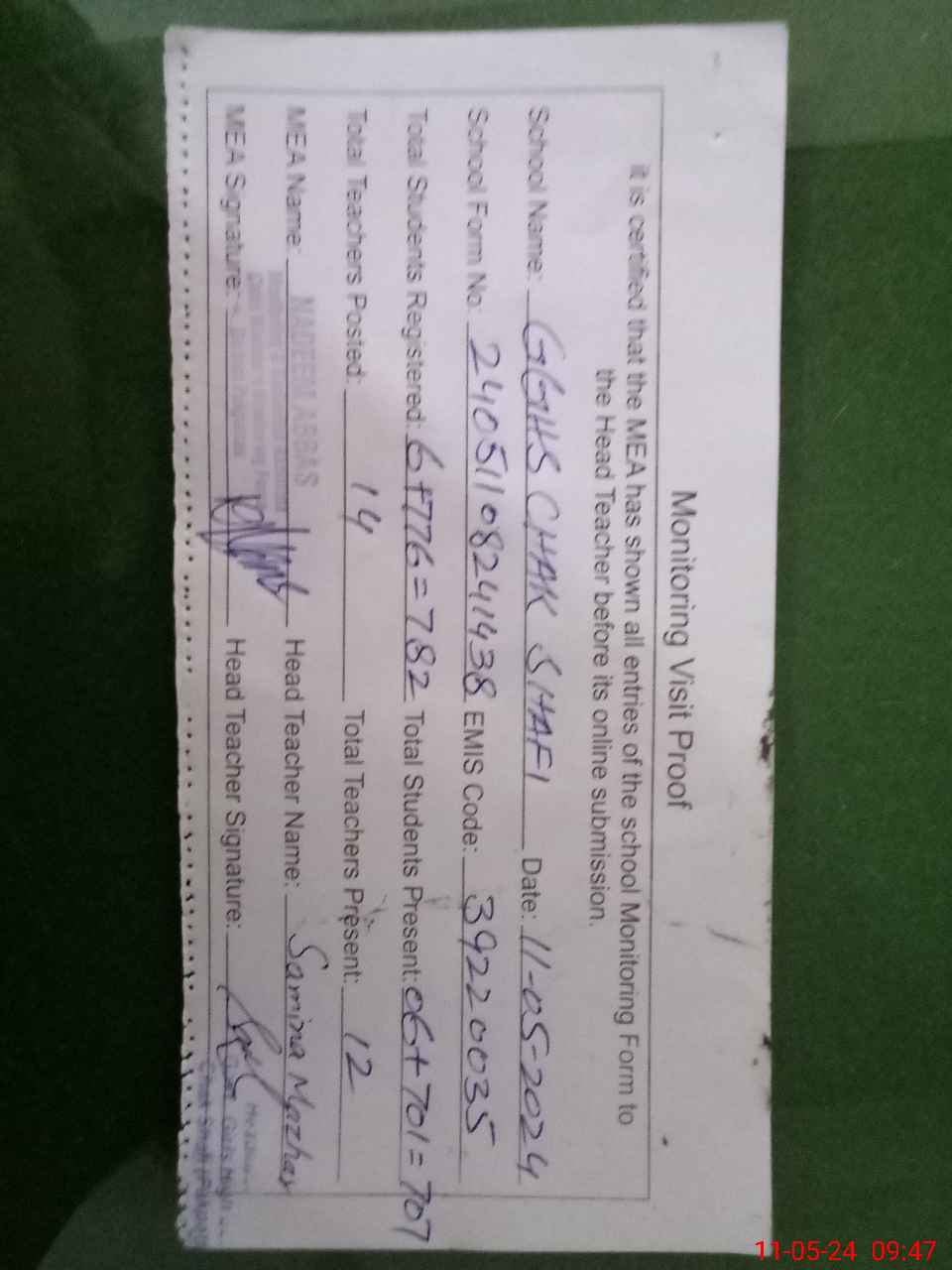 | EMIS Code: 39220035 | Name of School: GGHS CHAK SHAFI | |||