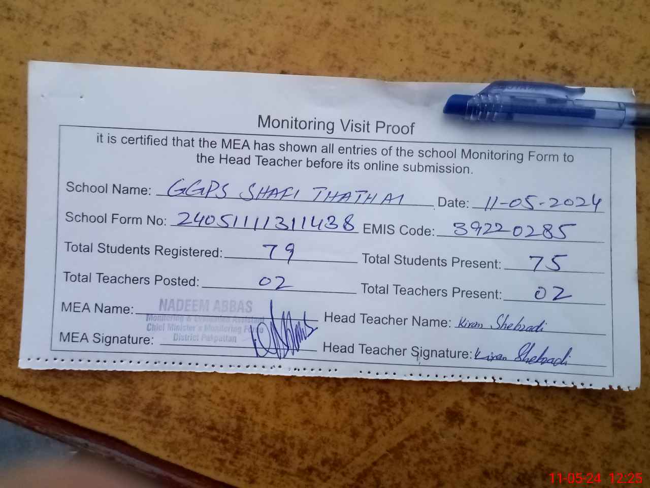| EMIS Code: 39220285 | Name of School: GGPS SHAFI THATHAI | |||
