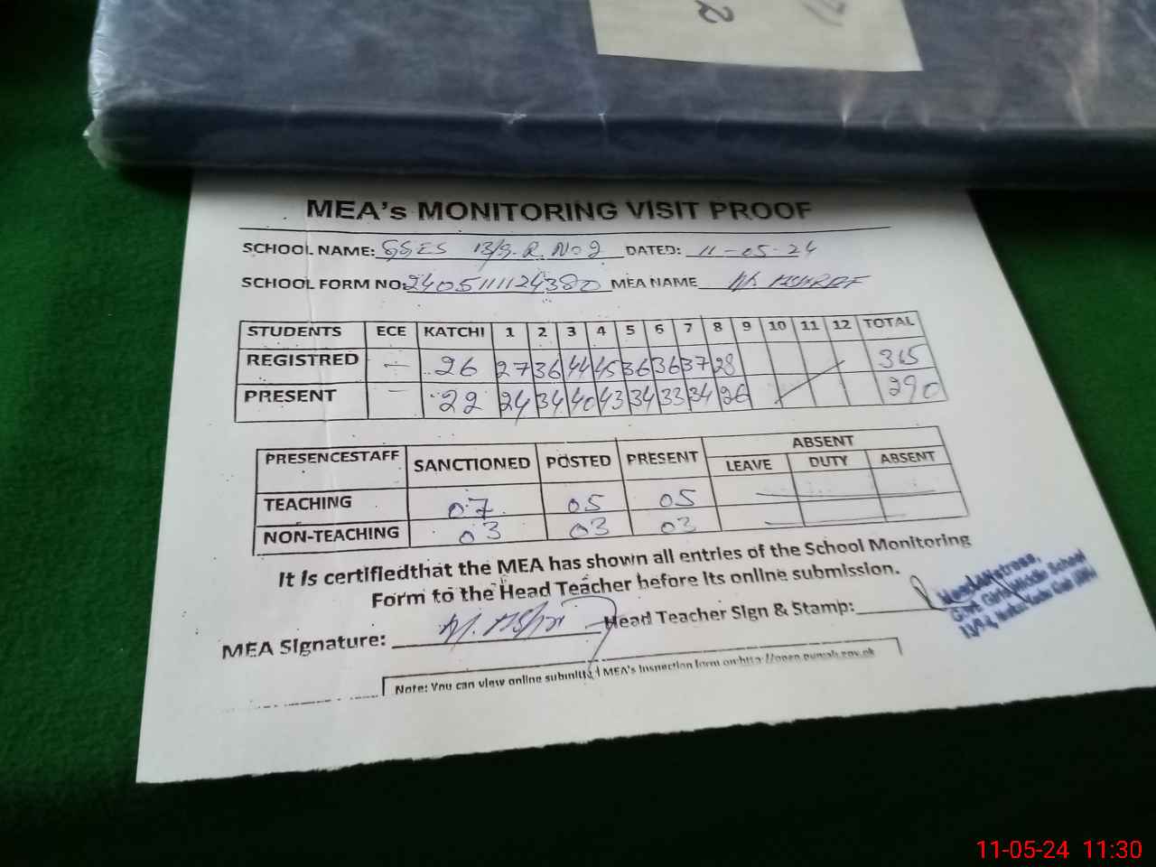 | EMIS Code: 36420122 | Name of School: GGES 13/9-R NO.2, KACHA KHUH | |||