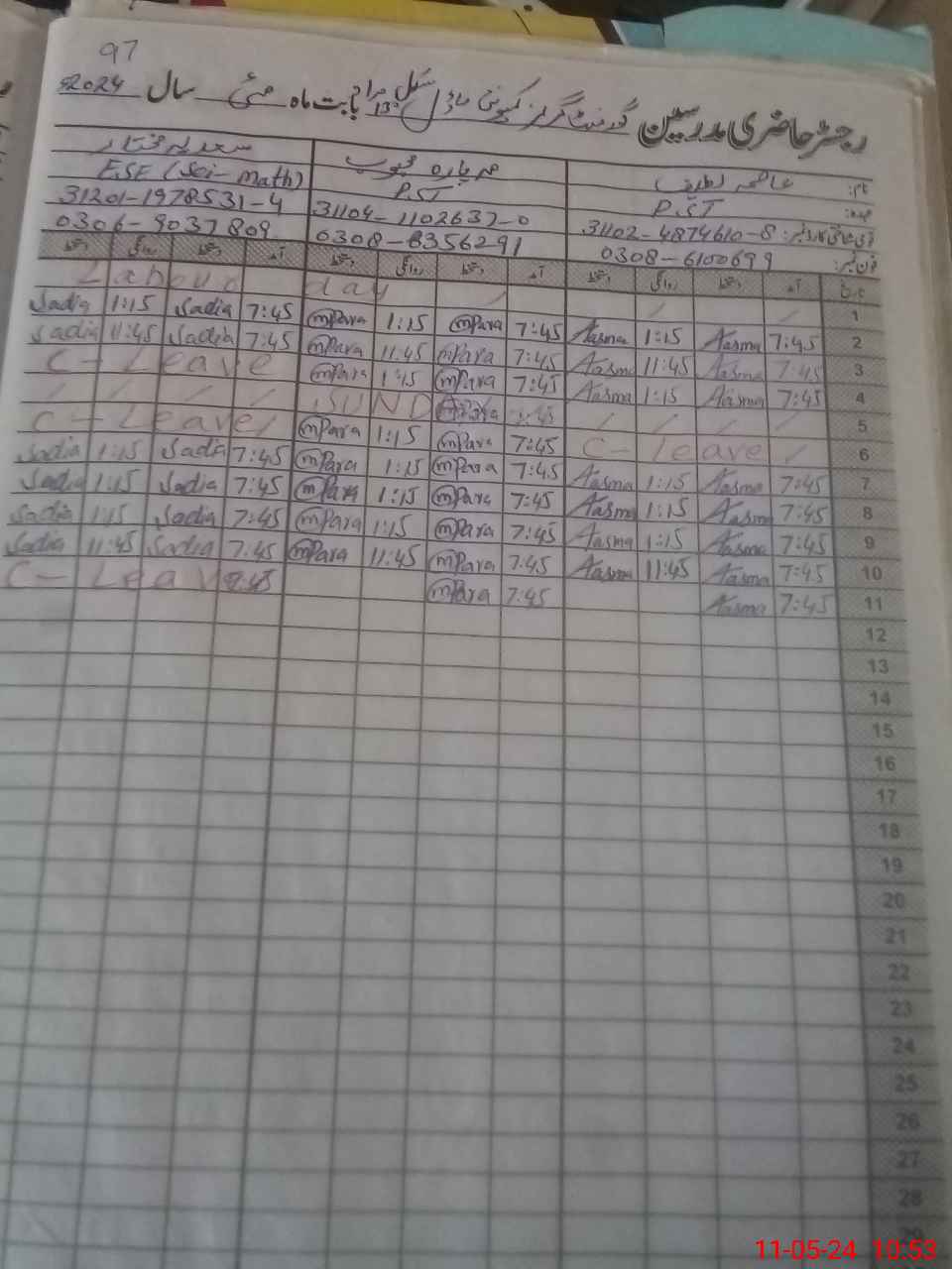 | Name: AS**** LA**** Designation: (School Headmaster's/Headmistress's) PST Phone/Cell Number: 03**** |