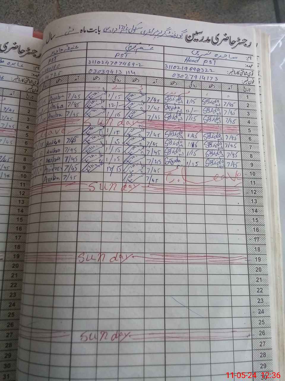 | Name: SA**** NA**** Designation: (School Headmaster's/Headmistress's) PST Phone/Cell Number: 03**** |
