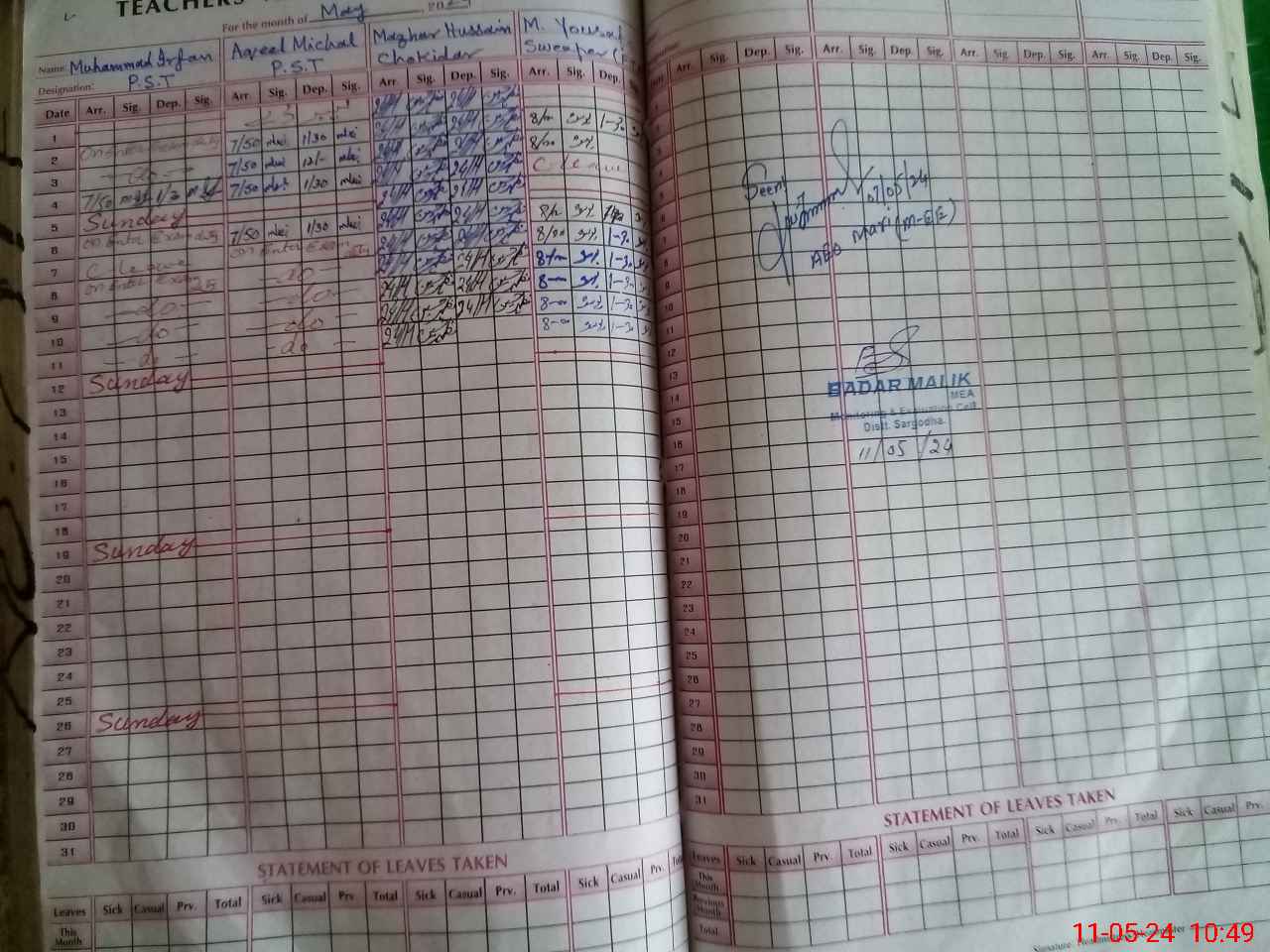 | 38**** | Aq**** Mi**** | 1 | 1 | 0 | 0 | 0 | 0 | 0 | 0 | 0 | 0 | 0 | Exam Duty |