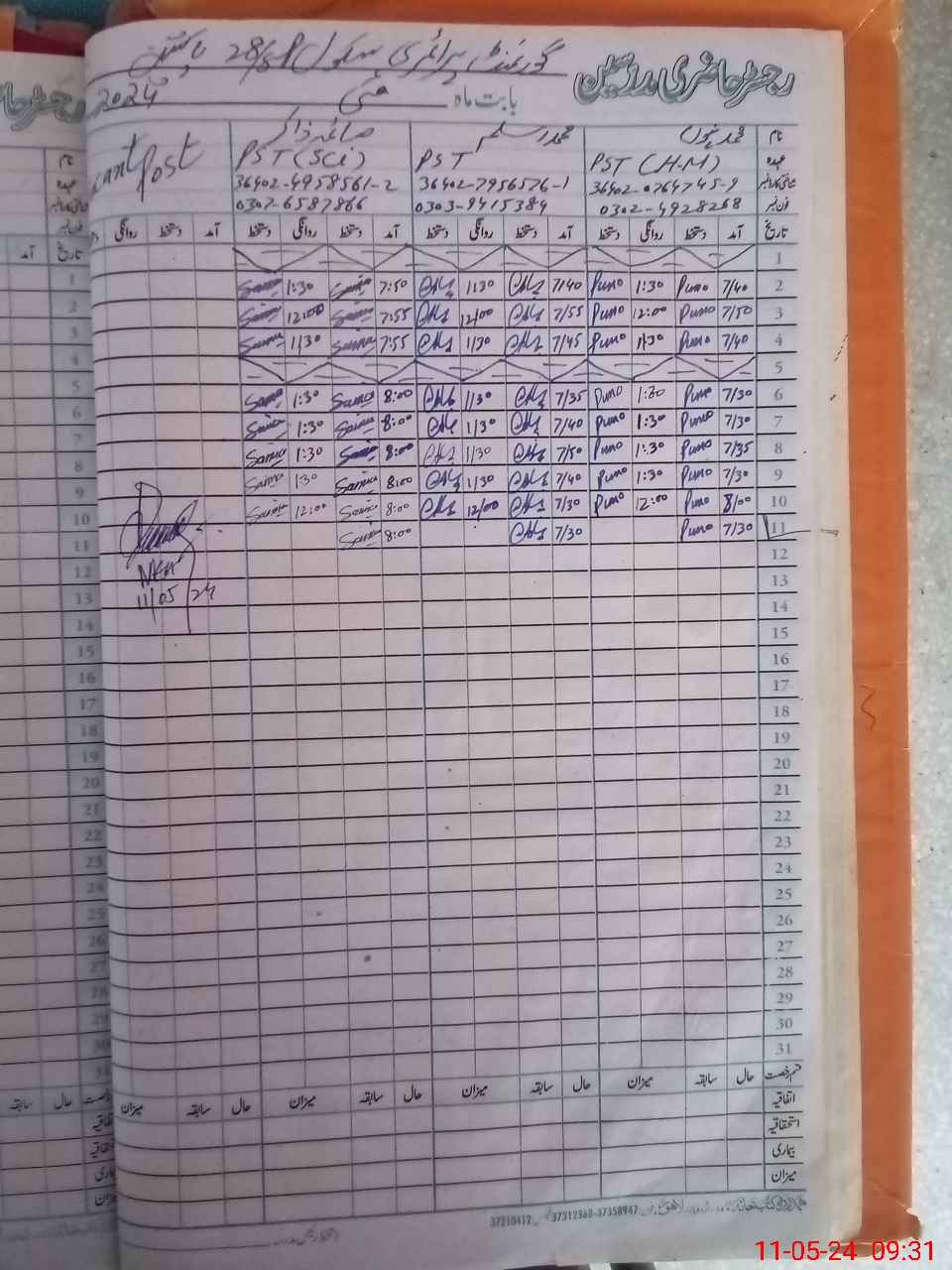 | Name: MU**** PU**** Designation: (School Headmaster's/Headmistress's) PST Phone/Cell Number: 03**** |
