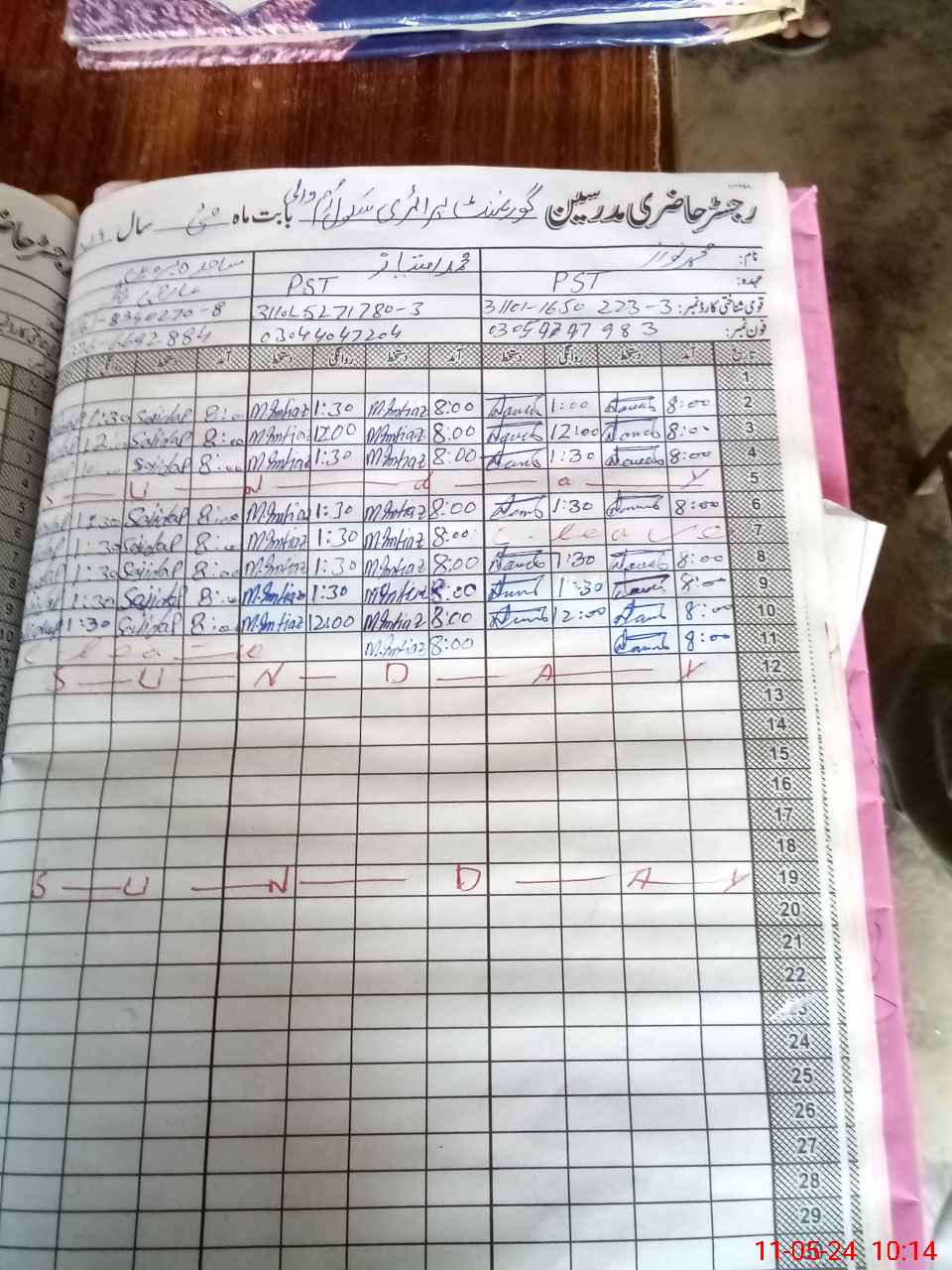 | CNIC | Full Name | Designation | R/C | Absence During Last Calender Month |