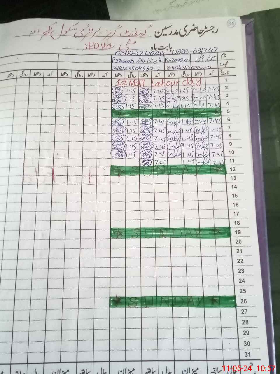 | CNIC | Full Name | Designation | R/C | Absence During Last Calender Month |