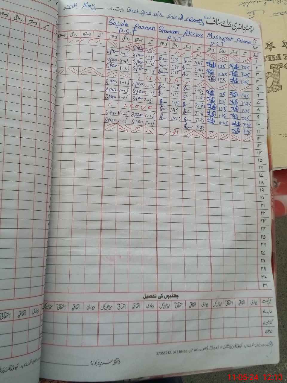 | CNIC | Full Name | Designation | R/C | Absence During Last Calender Month |