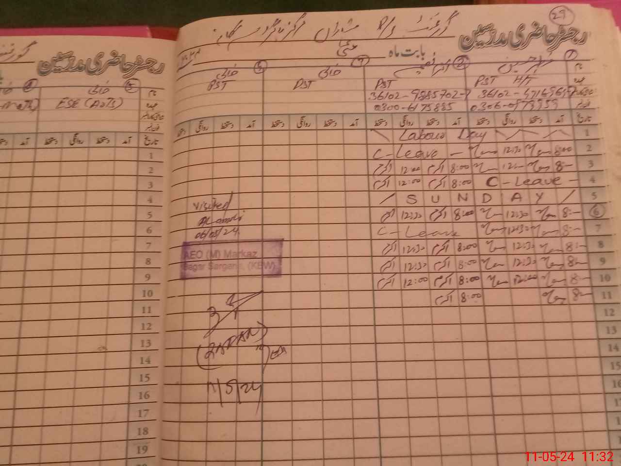 | CNIC | Full Name | Designation | R/C | Absence During Last Calender Month |