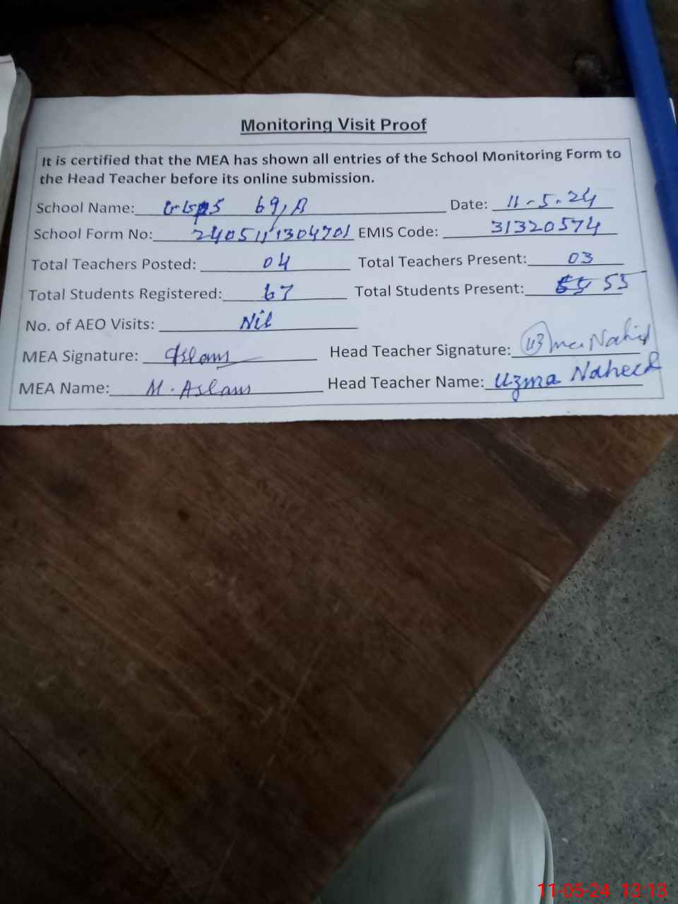 | EMIS Code: 31320574 | Name of School: GGPS CHAK 69/A | |||