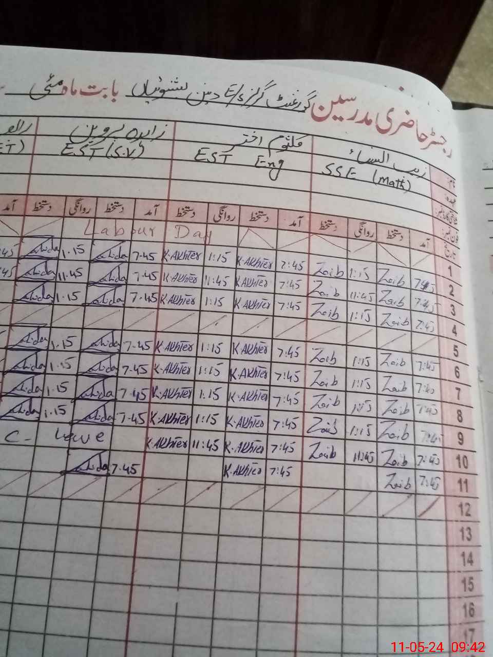 | CNIC | Full Name | Designation | R/C | Absence During Last Calender Month |